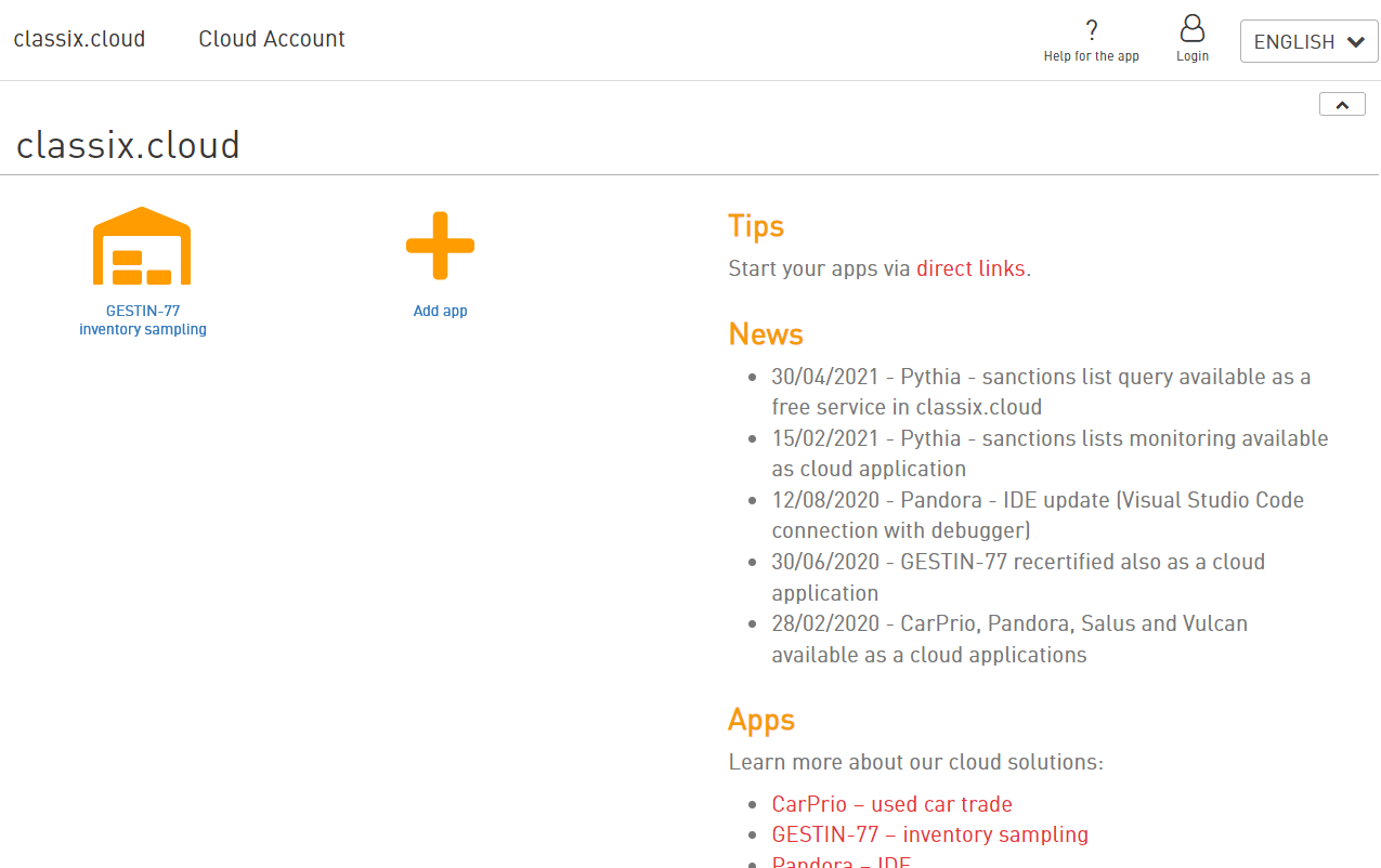 The GESTIN app suite you have selected is displayed in the dashboard and can be started from there.