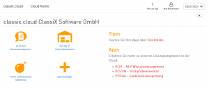 The KLIO app suite you have selected is displayed in the dashboard and can be started from there.